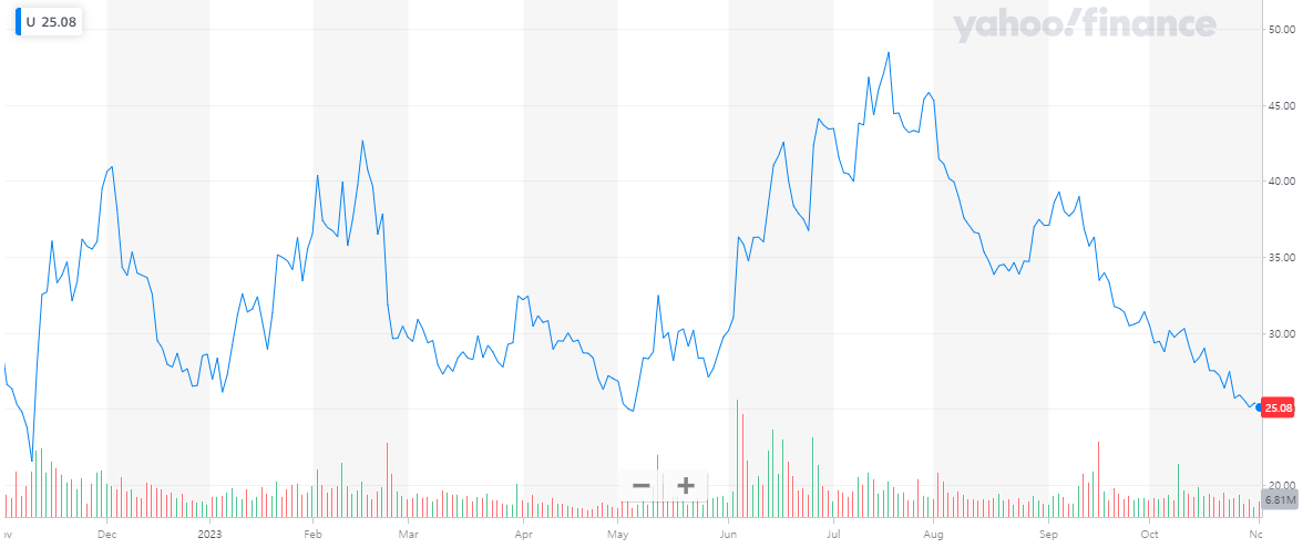 미국 장이 전반적으로 전반적으로 조정기에 들었다는 것을 감안하고서도 유니티의 주가는 올 7월 고점인 48불에서 거의 반토막 난 25불을 기록하고 있다. 상승 랠리 때의 FOMO를 이기지 못하고 남들이 말하는 유니티의 장기적인 성장성만 믿고 투자를 했다면 분명 고점에서 물린 상황일 것이다.